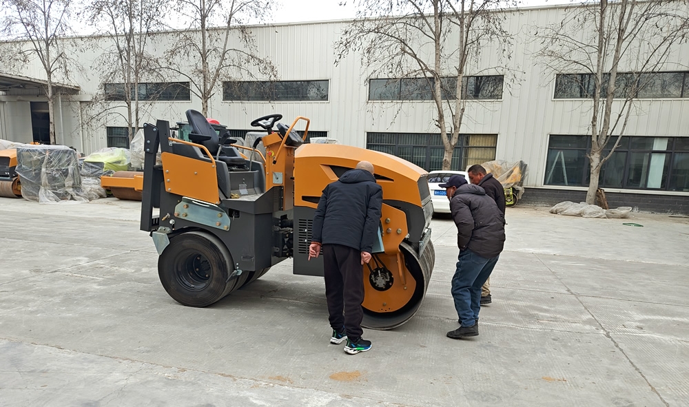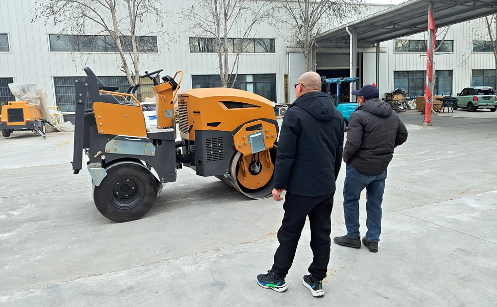2025年2月6日新年開工第一天,國內客戶一行3人來我廠參觀考察BM5000前鋼輪后膠輪小型壓路機,在工作人員的陪同下,參觀了我廠生產車間與展廳并試駕小型壓路機,詳細向業務人員了解機器的配置與參數,對我廠產品十分滿意,當場決定下單購買